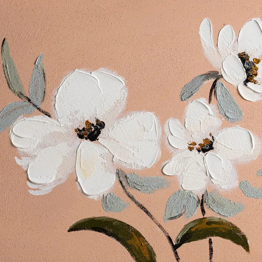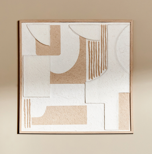 Wooden Framed Abstract Beige and White Geometric Artwork