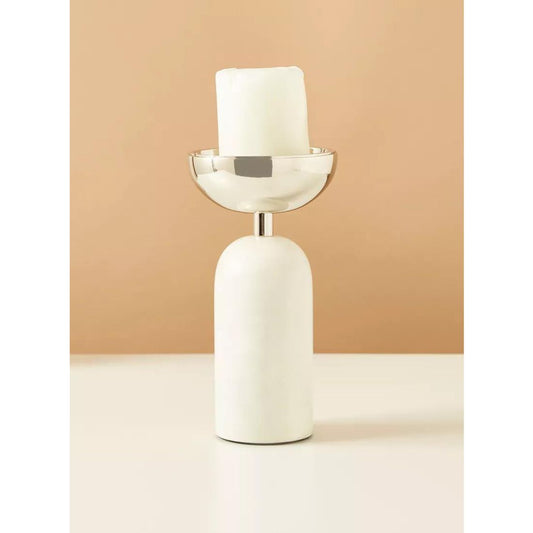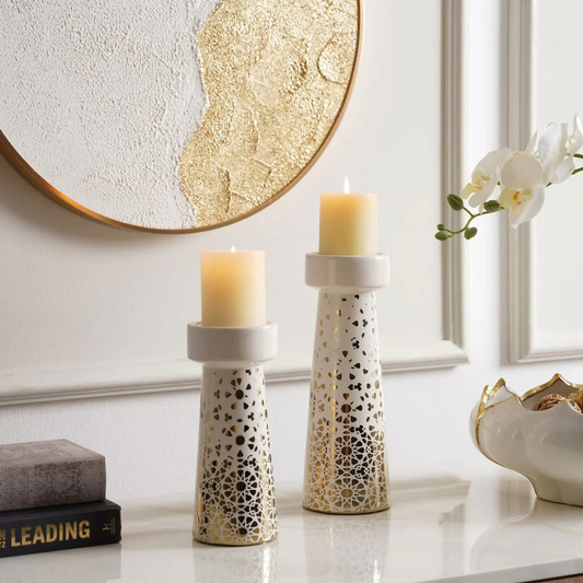 White and Gold Pillar Candle Holder