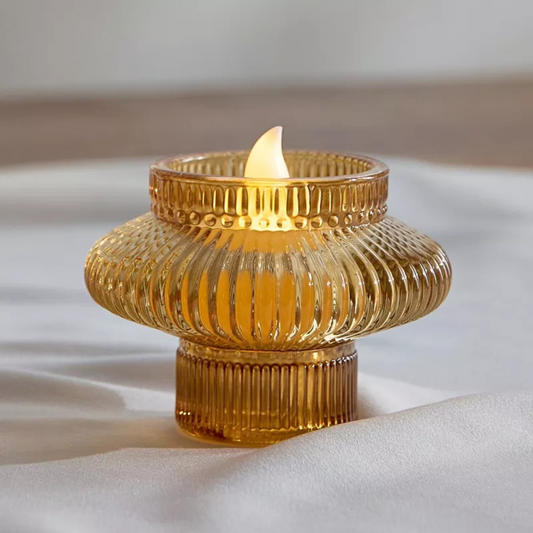 Amber Ribbed Tea light Candle Holder
