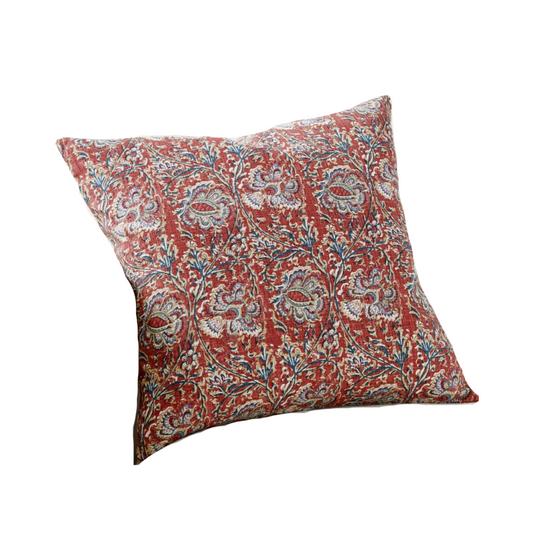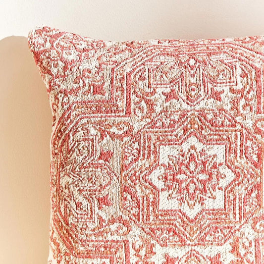 Bohemian Rust Patterned Cushion with Natural Fabrics