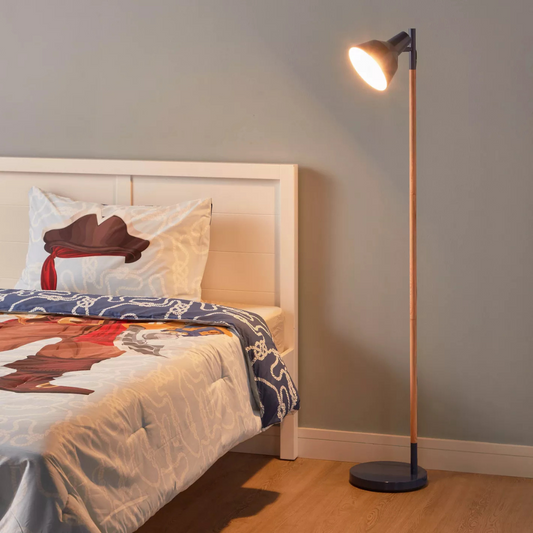 Blue and Wooden Floor Lamp