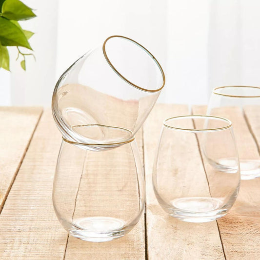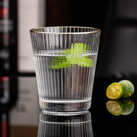 Ribbed Short Glasses with Gold Rim | 28 cl