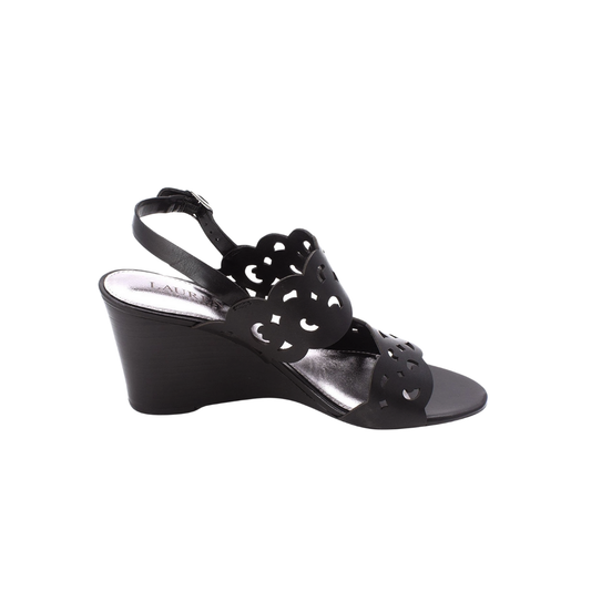 Black Laser Cut Wedge Sandals