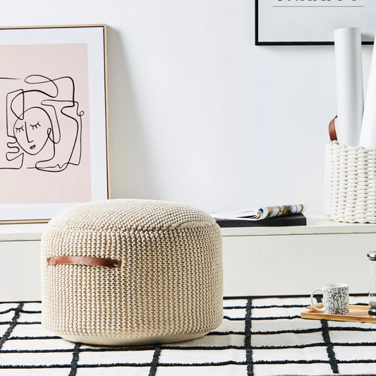Beige Knitted Pouffe