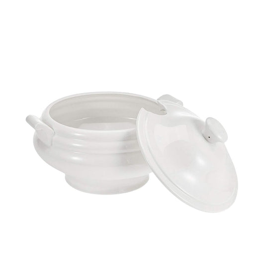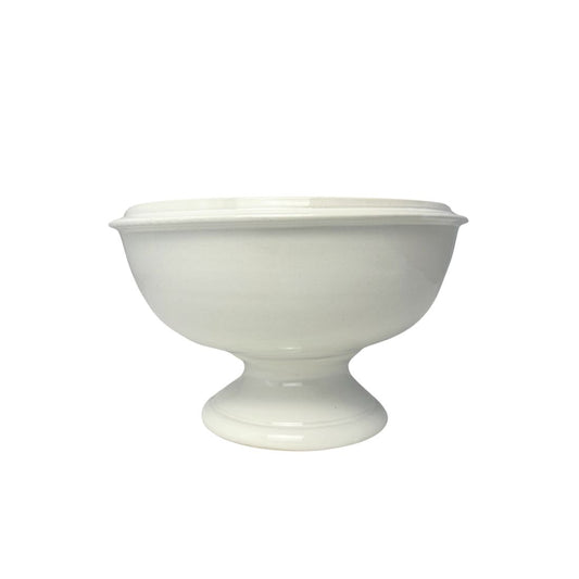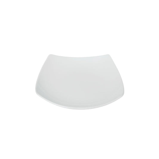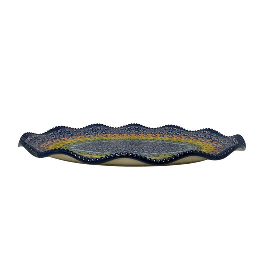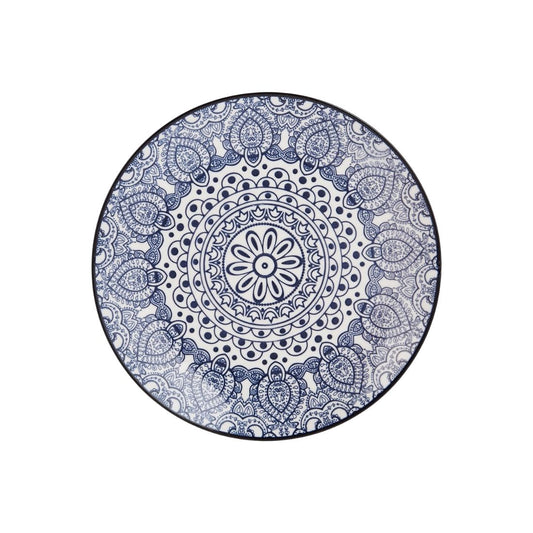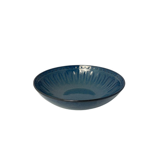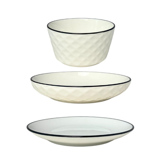 White Geometric Textured Soup Plate with Navy Blue Trim