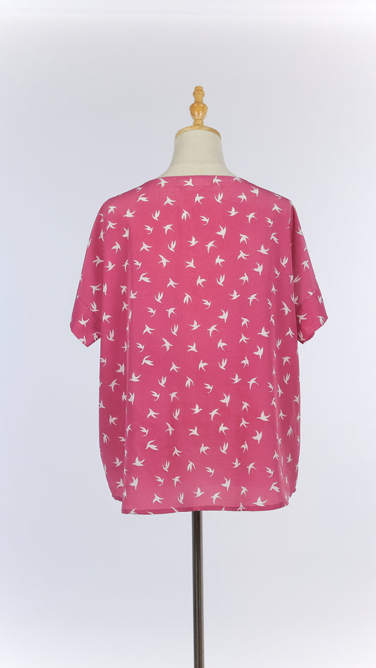 Pink Loose Top with White Bird Prints