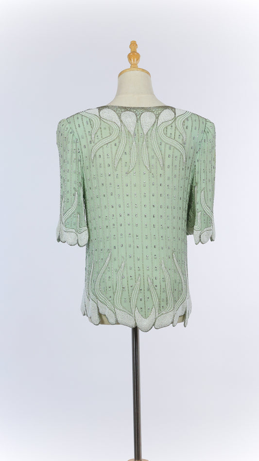 Vintage Beaded Short Sleeve Blouse