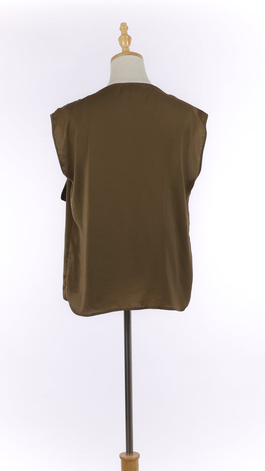 Brown Silk Blouse with Assymetric Collar