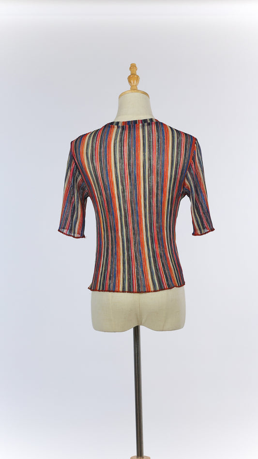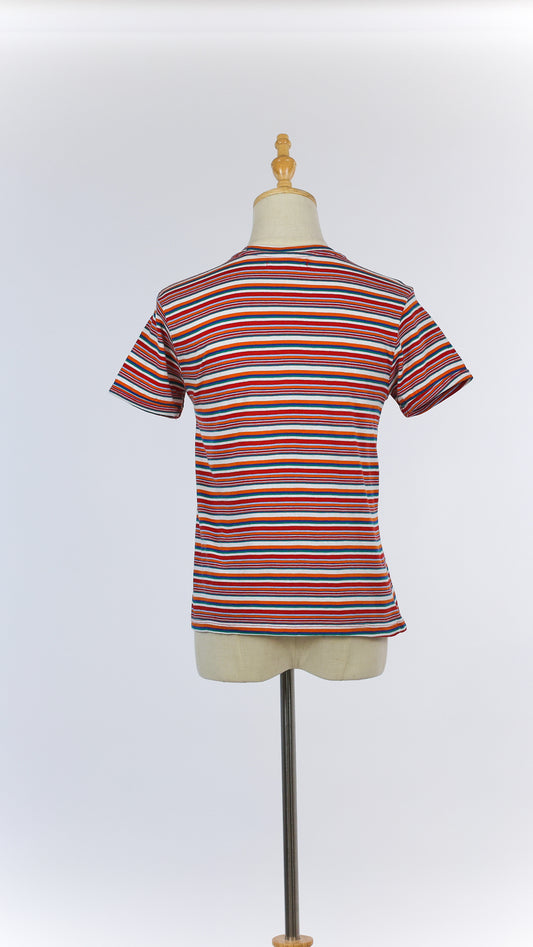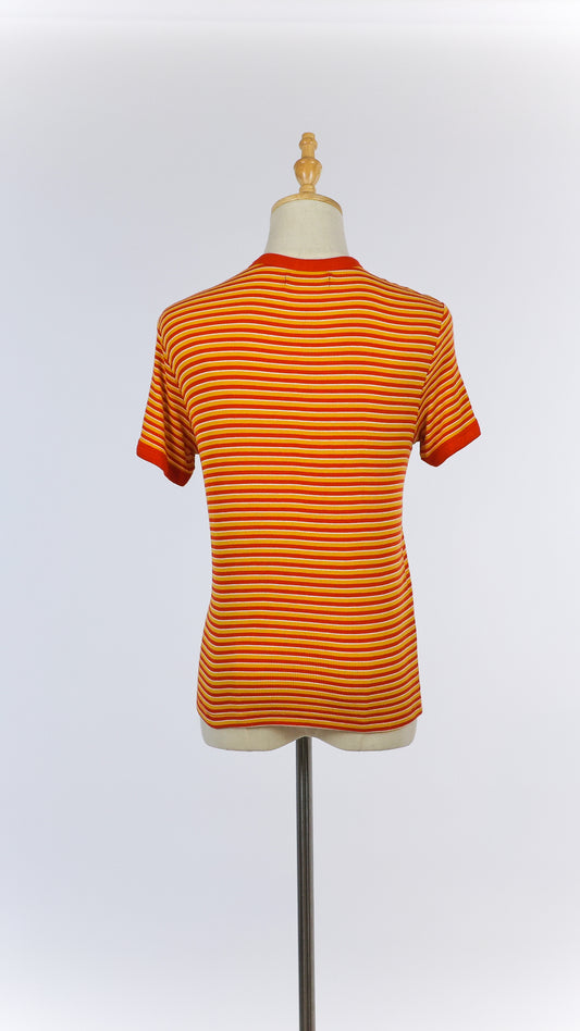 Retro Yellow/Red Striped T-shirt with Red Trim Detail