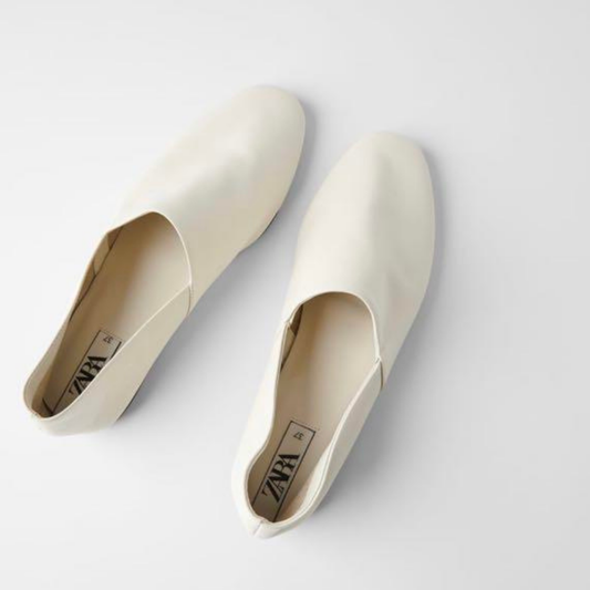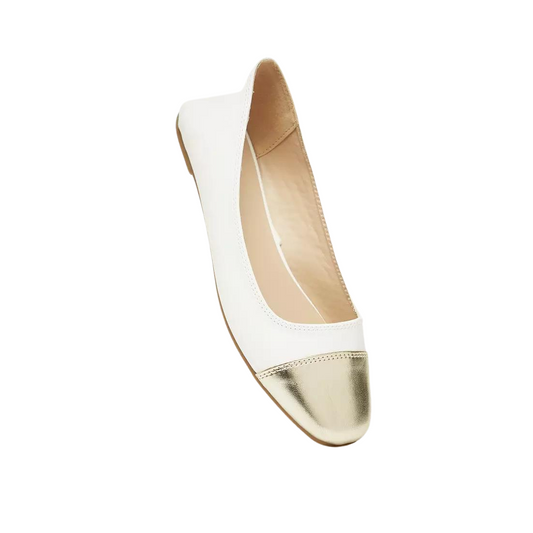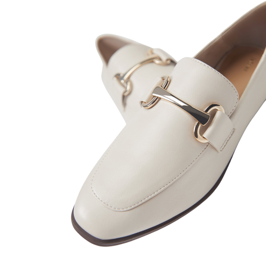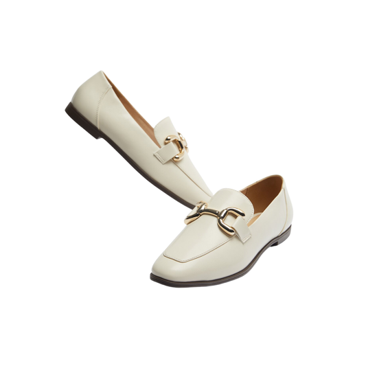 Ecru Soft Leather Slip-On Moccasins with Gold Buckle