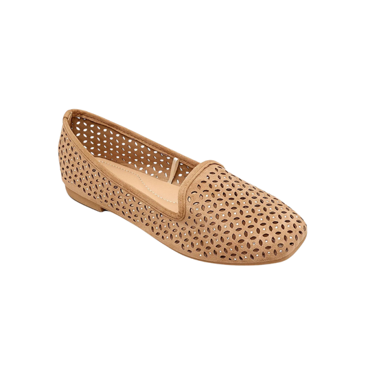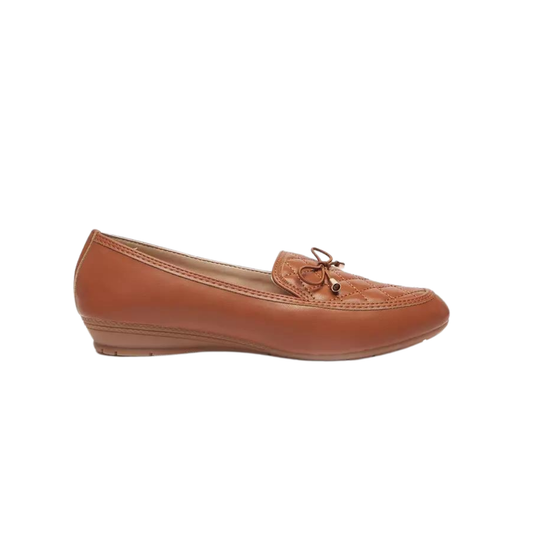 Tan Quilted Slip-On Moccasins with Bow Trim