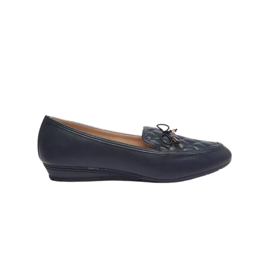 Navy Blue Quilted Slip-On Moccasins with Bow Trim