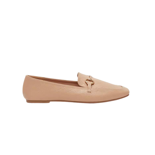 Nude Quilted Slip-On Moccasins with Gold Buckle