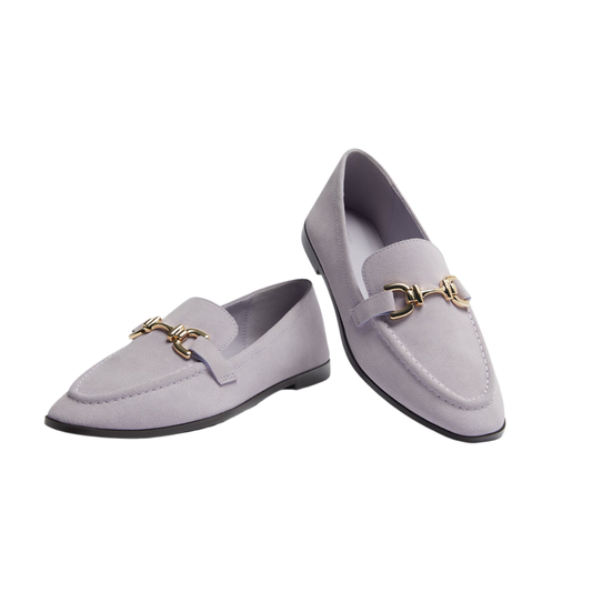 Lilac Suede Slip-On Moccasins with Gold Buckle