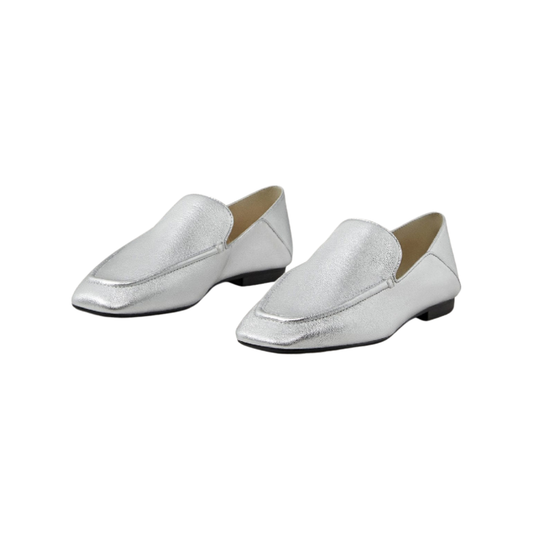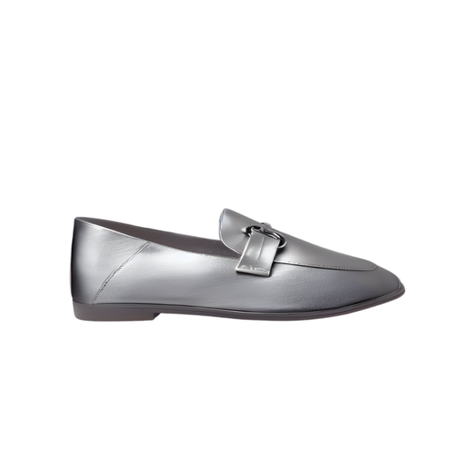 Silver Soft Leather Slip-On Moccasins with Silver Buckle