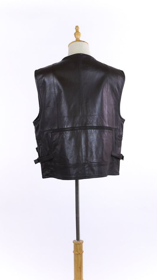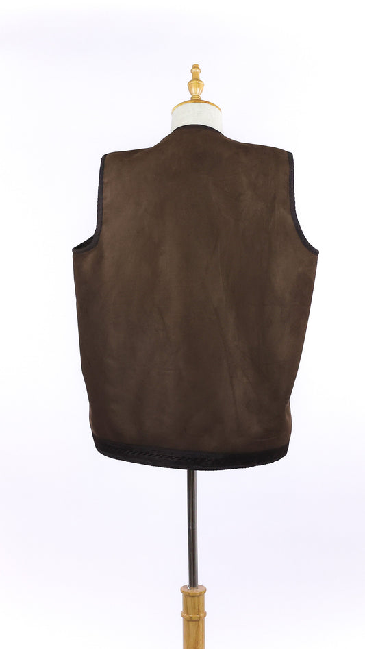 Fur Lined Suede Brown Vest With Embroidered Zipper Closure