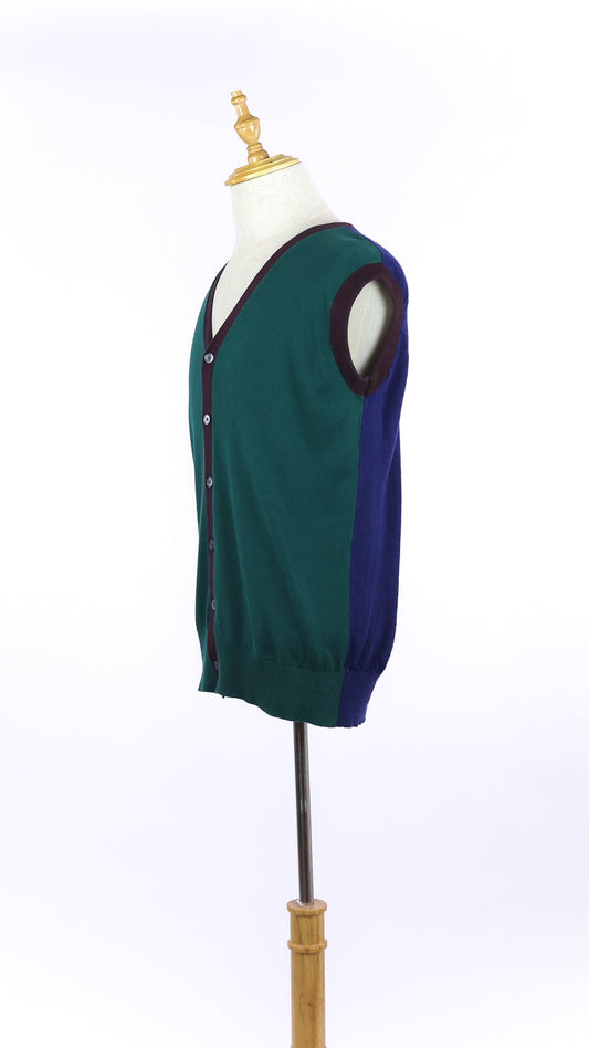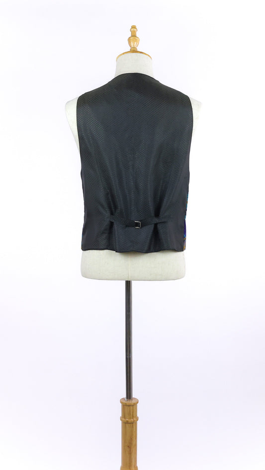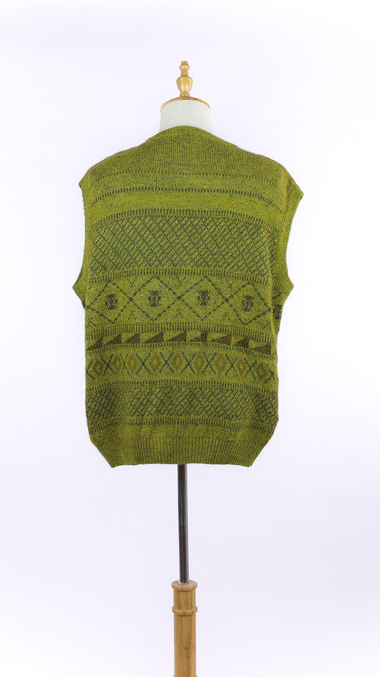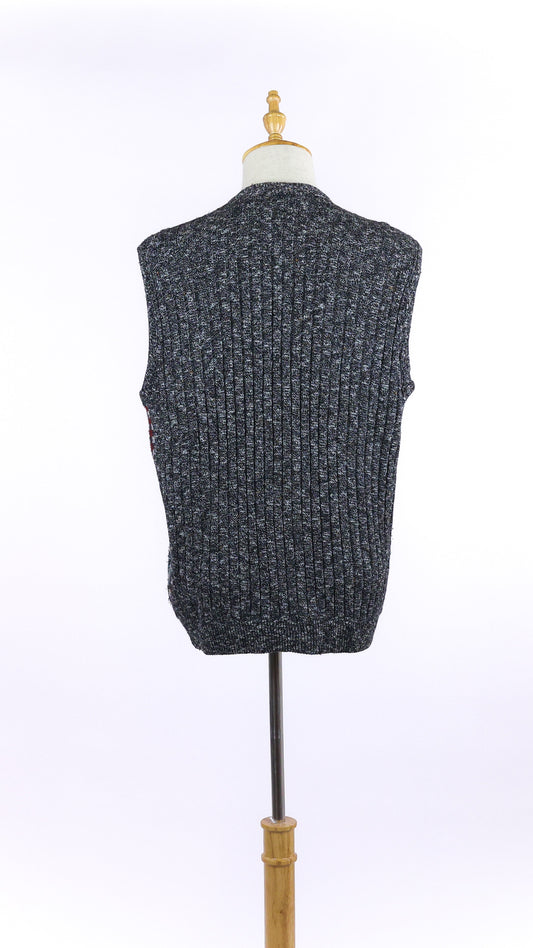 Vintage Grey Knitted Sweater Vest With Multicolored Pattern