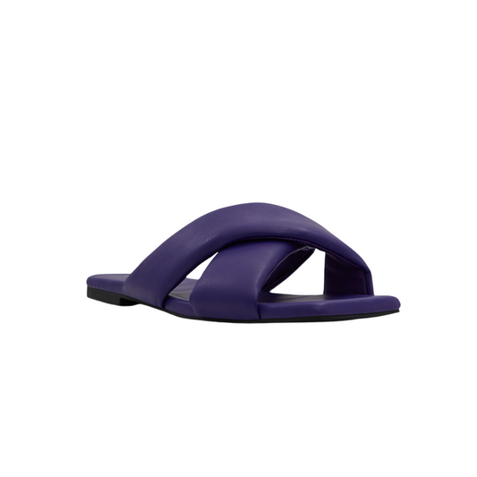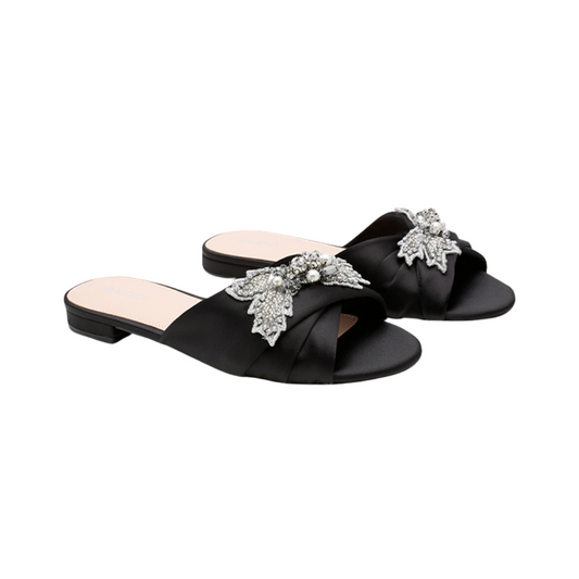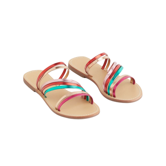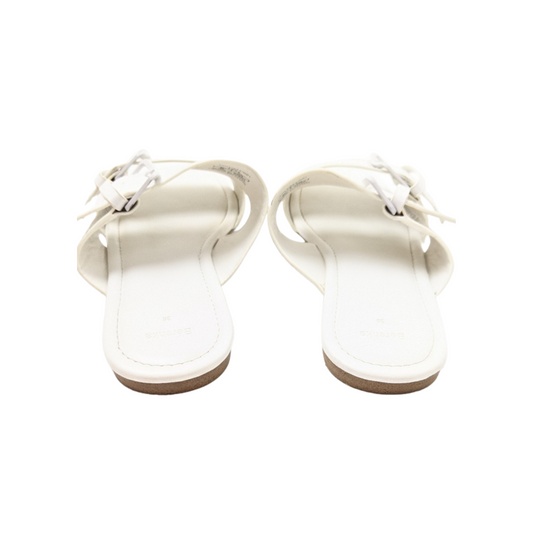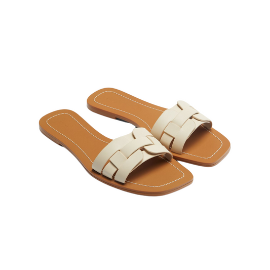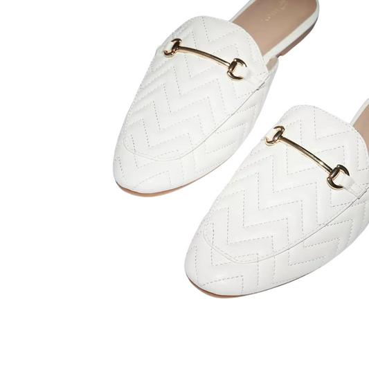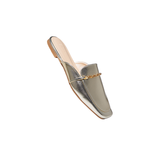 Beige Slip On Loafer Mules with Gold Buckle Detail