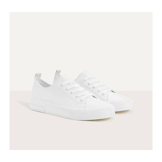 White Round Unisex Toe Low Top Sneakers