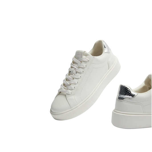 Off White Chunky Sole Sneakers with Silver Heel Counter