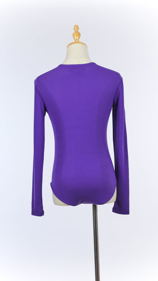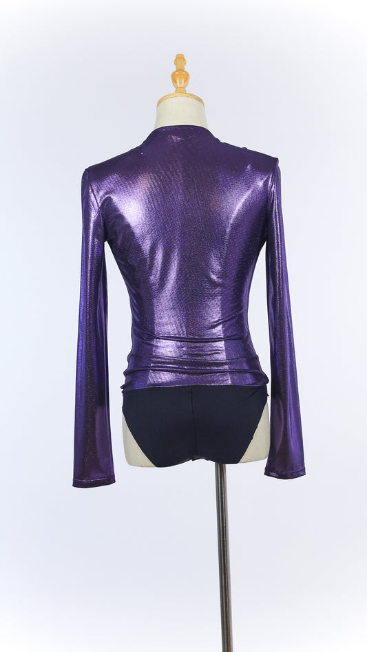 Shiny Purple Long Sleeve Lamé Bodysuit