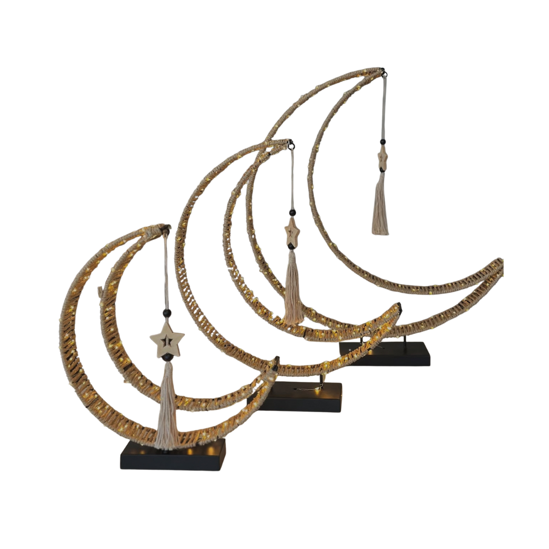 Rustic Trio Crescent LED Battery Operated Light Stands